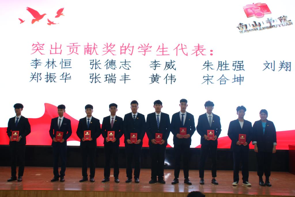 活动在嘹亮的国歌声中拉开帷幕,辅导员马茜宣读了南山书院表彰决定。对获得先进集体的5个书社、获得优秀宿舍的30个宿舍进行了表彰,授予高希政等958名同学“学习之星”称号、娄忠等237名同学“优秀学生”称号、俎志东等111名同学“优秀学生干部”称号、周诗童等30名同学“最佳贡献奖”、刘明豪等28名同学“南山杯”篮球赛“最佳活力奖”。