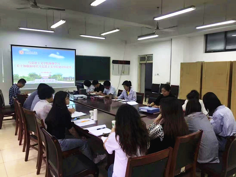 9月23日上午,马克思主义学院组织专题学习会,深入学习贯彻《关于加强新时代马克思主义学院建设的意见》精神,研究贯彻落实方案。