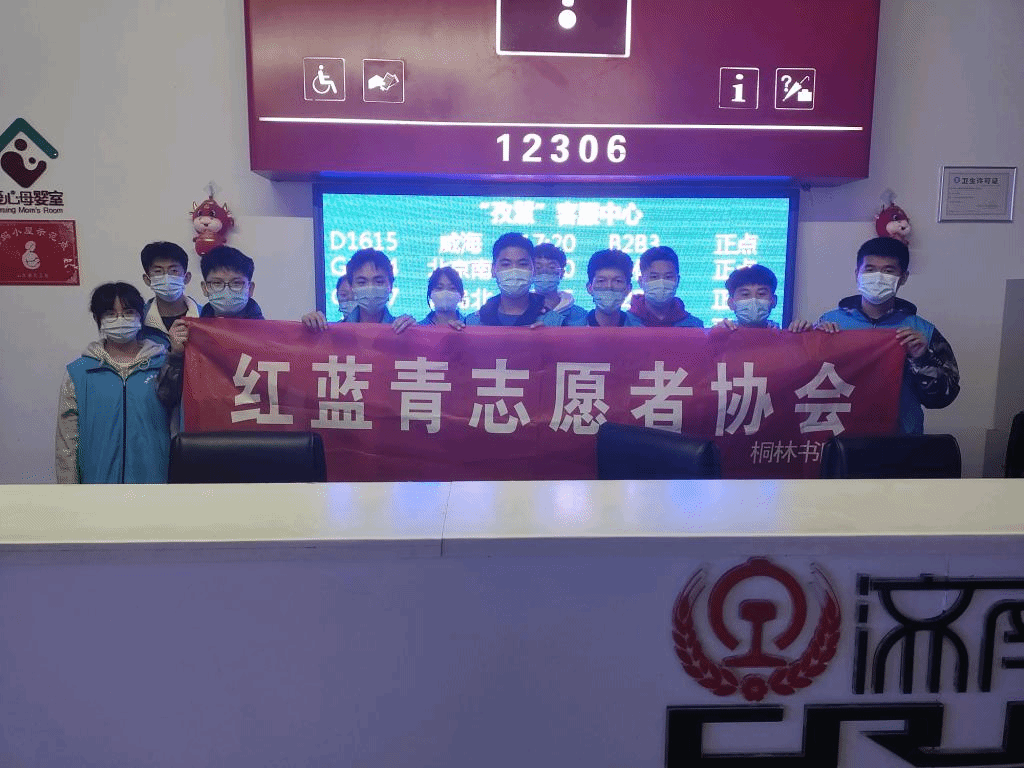 10月24日,桐林书院红蓝青青年志愿者协会组织10余名学生,前往济南站开展志愿服务活动