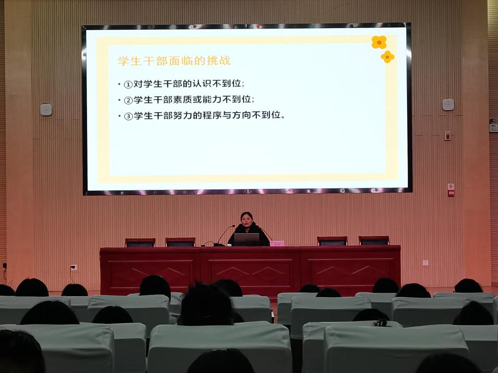 最后,张锦以“星光不问赶路人,时光不负有心人”鼓励学生干部自我鞭策,做到在其位谋其政,敢于负责、勇于担当,努力成为老师与同学间的桥梁和纽带。
