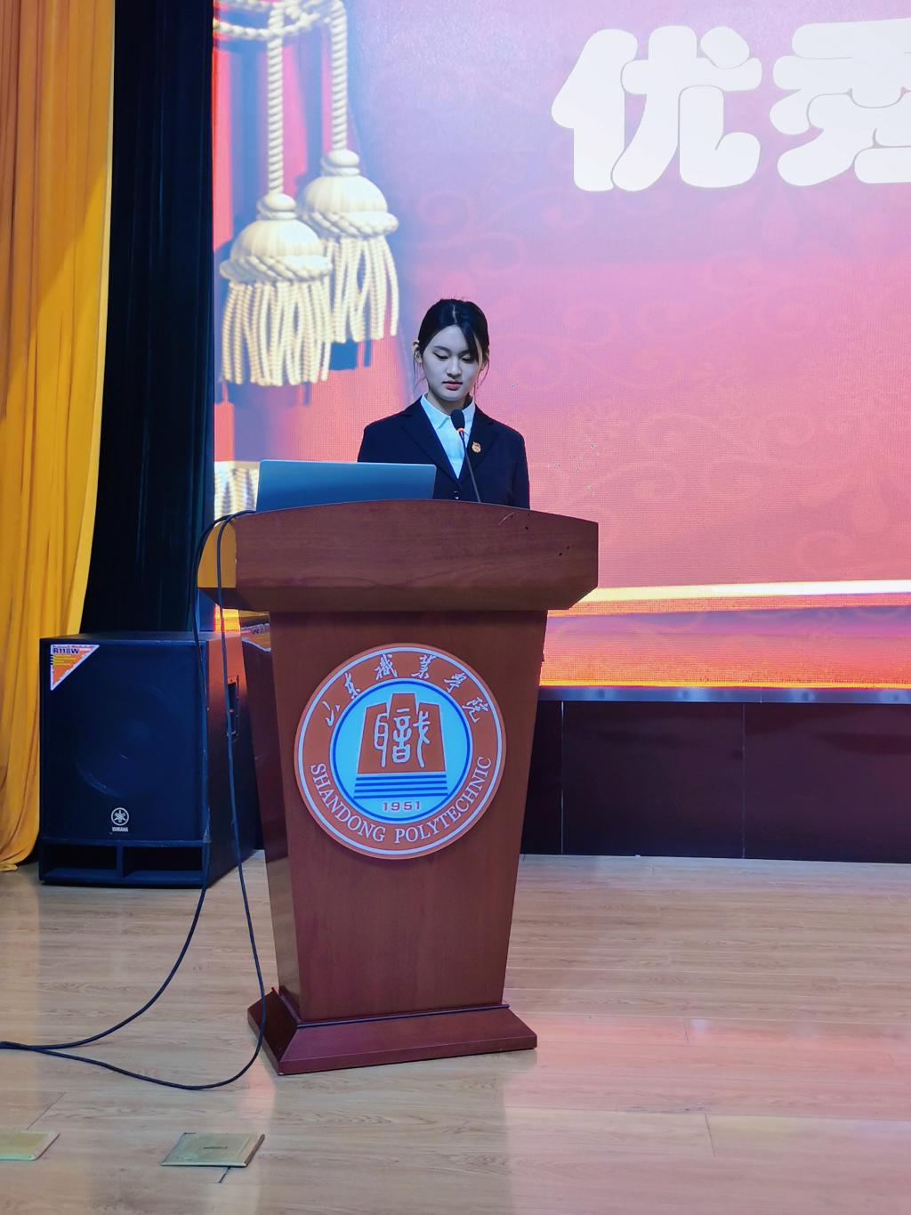 全奖学金宿舍、校优秀文明宿舍6518宿舍代表辛笑上台发言,分享了宿舍成员间的相处之道和学习之道。