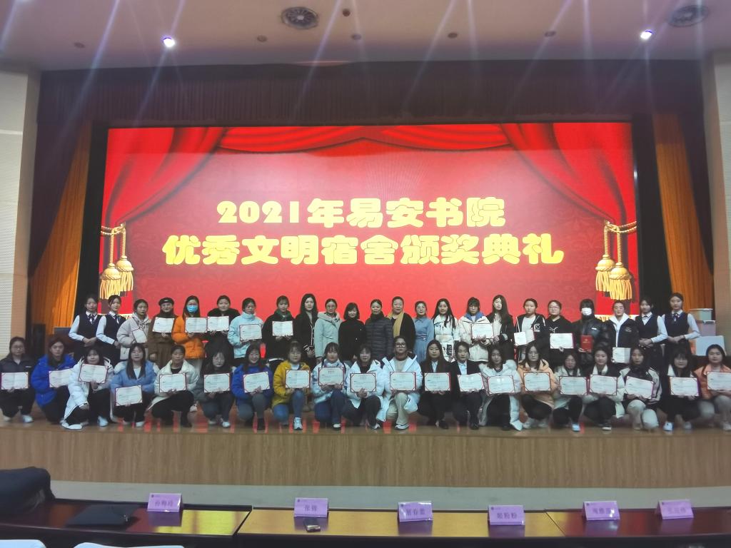 12月16日下午,易安书院在图书馆行政楼西报告厅举办2021年优秀文明宿舍颁奖典礼。典礼由书院辅导员周雅莲主持,易安书院副院长钟映雪、张锦,团总支书记孙梅玲,辅导员张迎伟、姬粉粉出席活动。