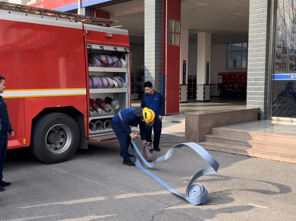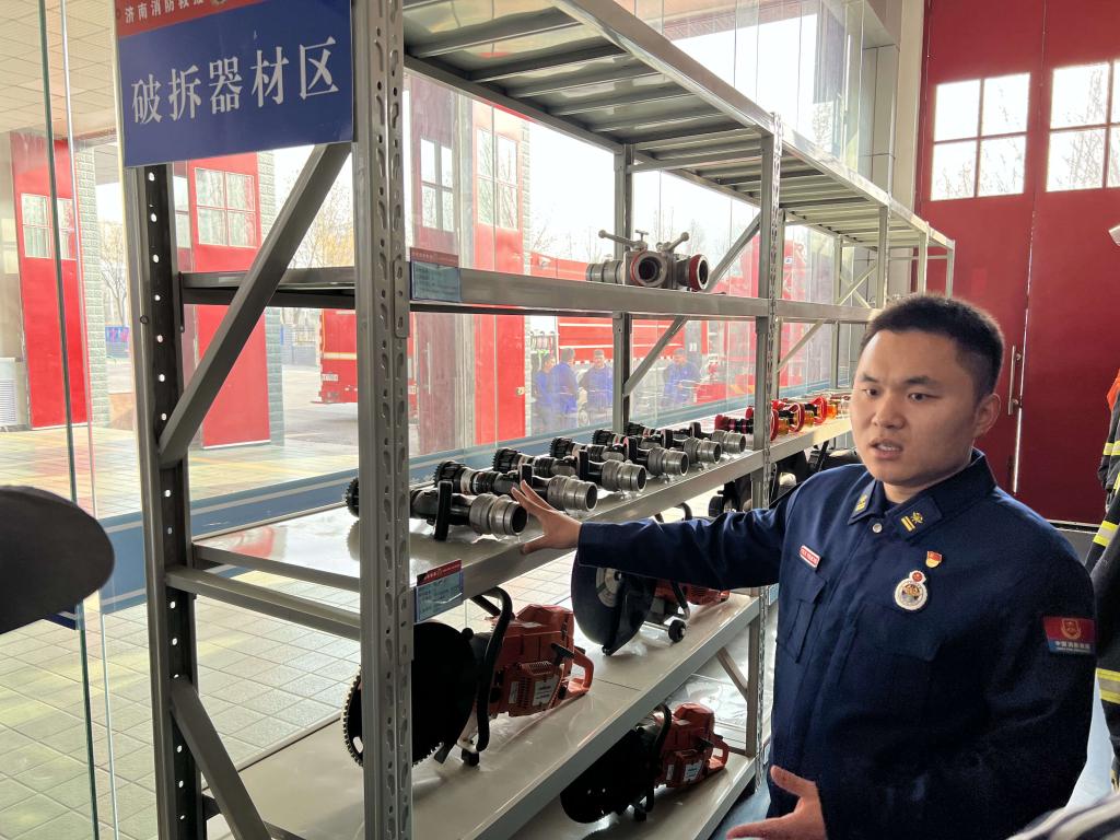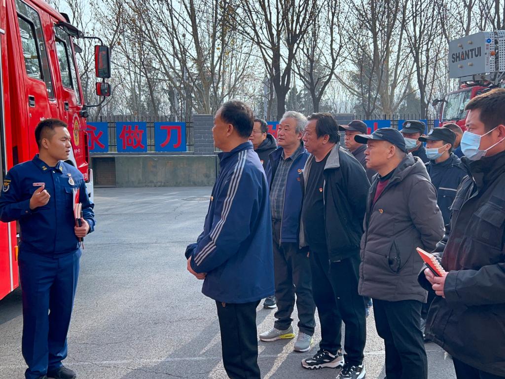 会后,安全保卫处党支部全体党员及保安队员代表受邀前往孙村消防救援站进行了参观学习。消防队员向大家讲解了各类消防车的功能及用途,并进行了消防水带连接和灭火防护服速穿展示。