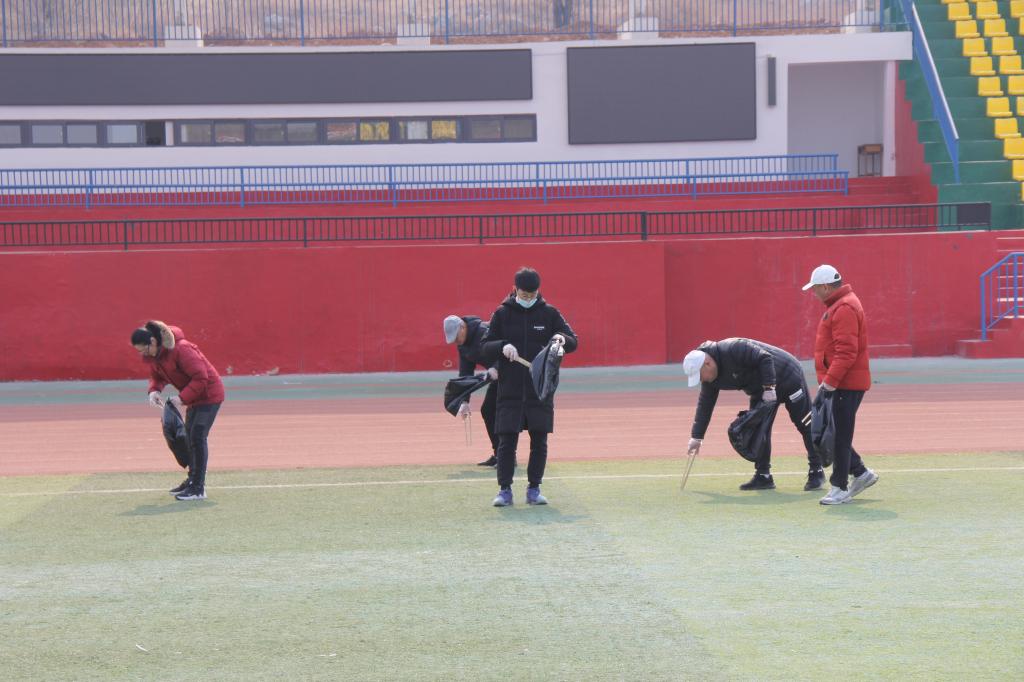 大家发扬不怕脏、不怕苦、不怕累的精神,分组对学校运动场上的杂物、纸屑等进行清理,并对相关体育设施归类摆放。辛勤的汗水换来了运动场的焕然一新,提升了体育课堂教学和学生课外锻炼的环境品质。