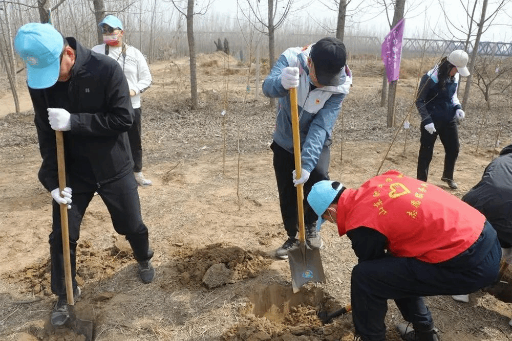 在黄河生态文明环境教育示范基地,一行人开展了净滩、植树活动。通过捡拾黄河岸边各类垃圾,种下一颗颗绿树,为打造青山常在、绿水长流、空气常新的美丽中国贡献自己的一份力量。