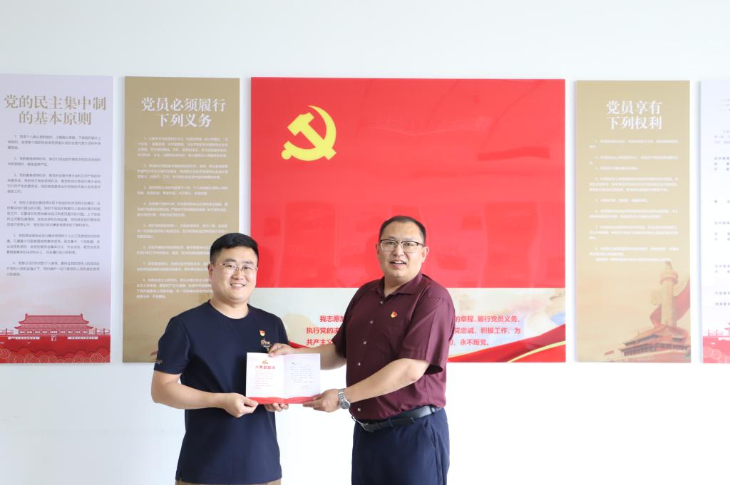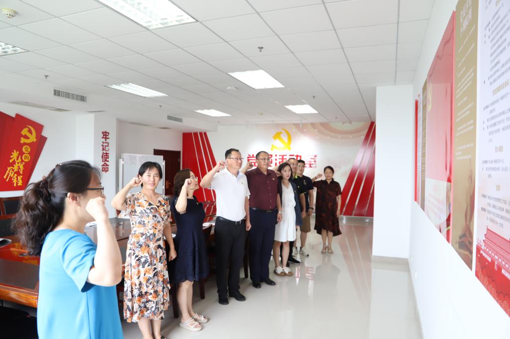 杨硕同志领誓,带领着在场各位党员重温入党誓词。面对鲜红的党旗,大家举起紧握着的右拳,郑重宣誓:“我志愿加入共产党,拥护党的纲领,遵守党的章程……”。庄严的誓言激励着在座的党员不忘初心、牢记使命,更加坚定了为党和人民奋斗终身的信念。
