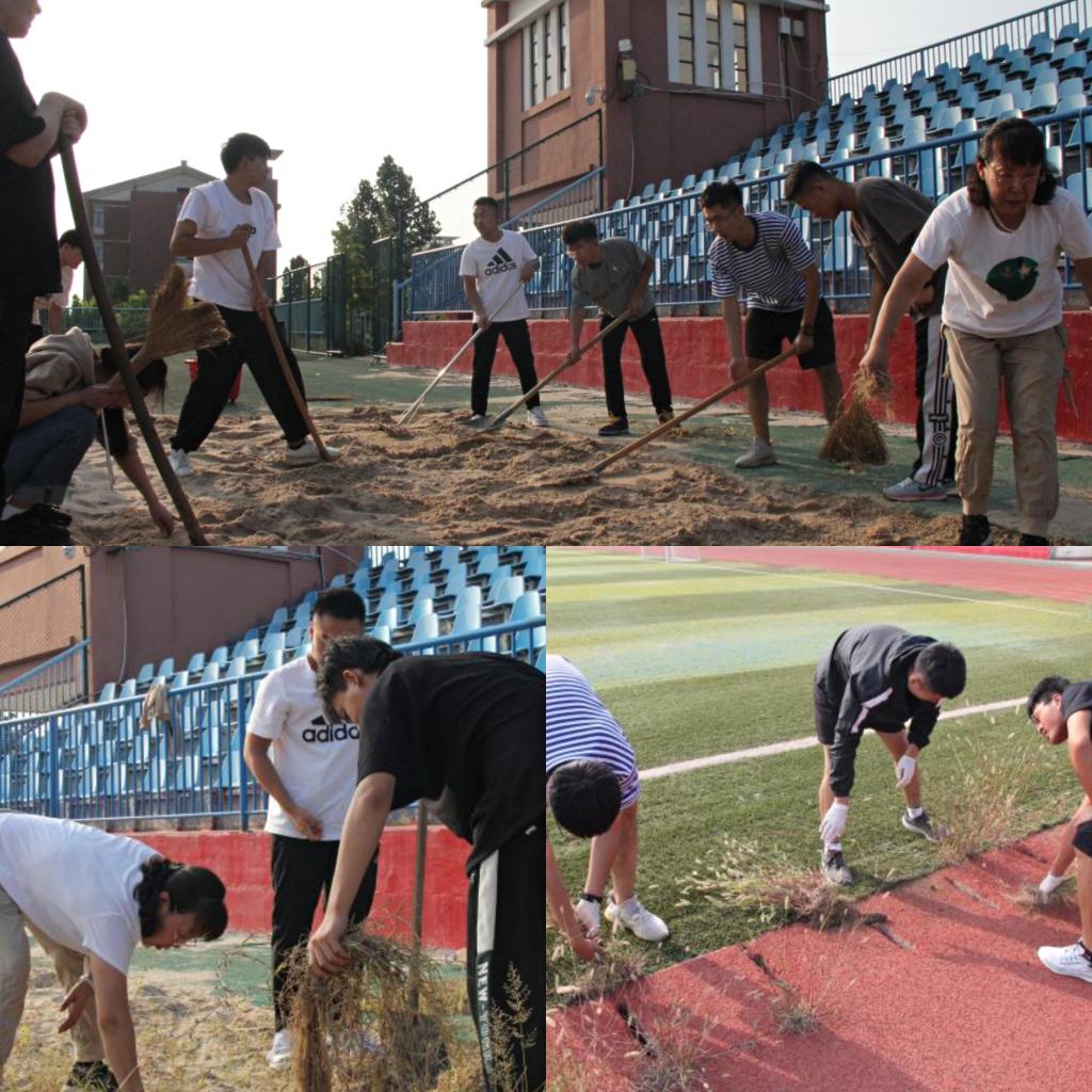 开学之际,为给同学们营造一个美丽整洁的体育运动环境,培养同学们的劳动观念和无私奉献的精神,9月5日下午,体育教学部组织体育部学生干部、勤工助学学生开展运动场除草美化活动。