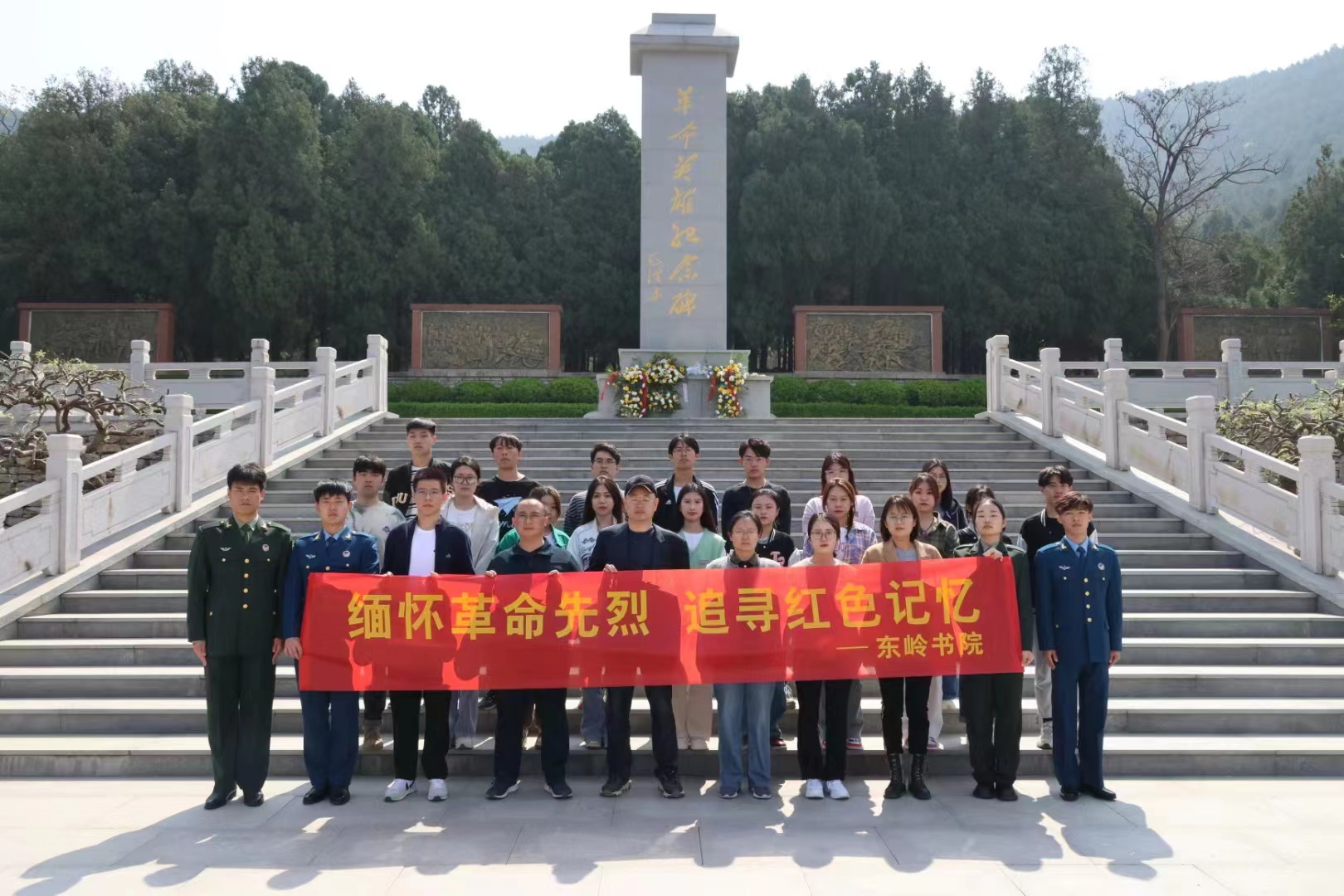 清明节来临之际,为缅怀革命先烈,弘扬爱国主义精神,3月31日,东岭书院前往济南市长清区大峰山革命烈士墓园开展“清明祭英烈”活动。东岭书院党总支书记兼院长汤华东,书院全体辅导员,2021级学生干部代表及东岭学兵代表参加活动。