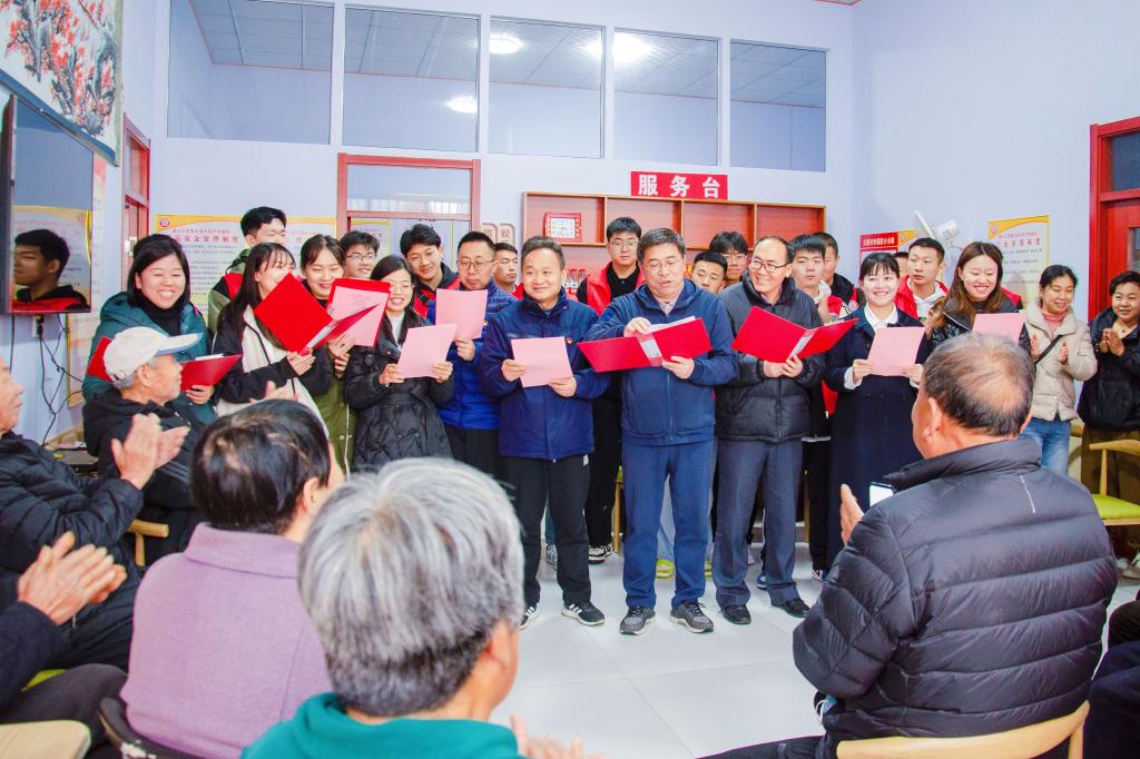在大院村村部内,刘林与大院村党支部书记万传学进行谈话交流,一同为同学们普及党的二十大精神,介绍新时代乡村文明建设有关情况。在大院村党群服务中心党员活动室内,师生们进行了文艺汇演,开展了红色文化宣讲,并对大院村老党员们进行了慰问,让老党员们感受到党的温暖。