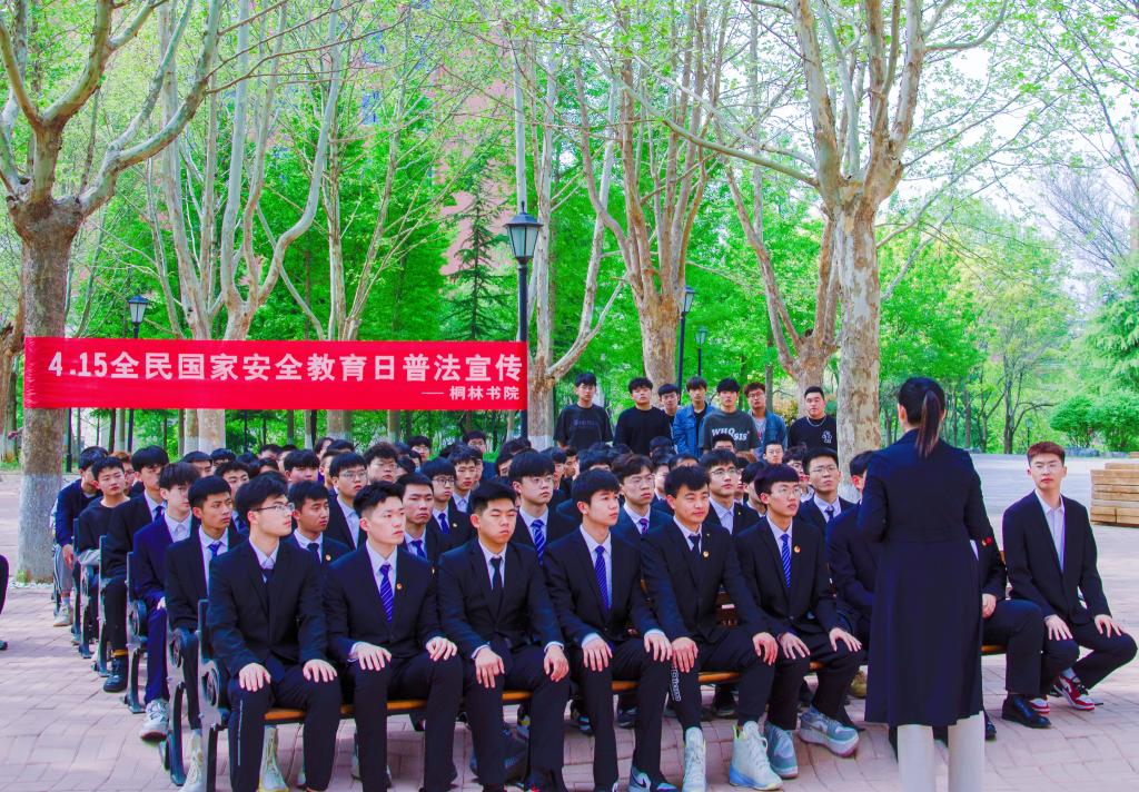 第八个全民国家安全教育日即将来临之际,4月13日,桐林书院道德与法治协会在桐林三角广场组织开展了国家安全教育日普法宣传活动。书院团总支书记薛高芳为大家做了主题报告,桐林学子踊跃参加。