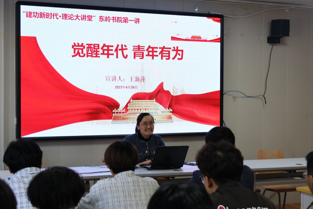 为深入开展学习贯彻习近平新时代中国特色社会主义思想主题教育,按照学校主题教育实施方案,东岭书院在书院右苑一楼党团活动室举办了“建功新时代·理论大讲堂”系列专题宣讲活动。4月26日,第一讲开讲,邀请工会主席王新萍进行宣讲,东岭书院部分学生参加。