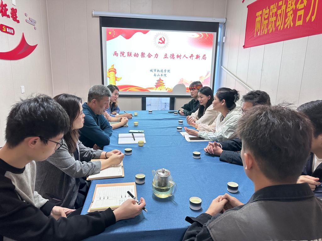 为落实立德树人根本任务,发挥党建引领作用,凝聚党建育人合力,10月31日,南山书院党总支与城市轨道学院党总支开展了“两院联动聚合力,立德树人开新局”联创共建活动,双方党员教师、部分学生代表参加。