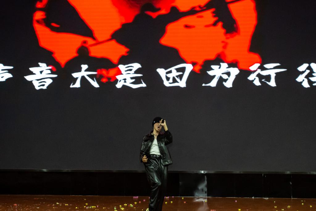 民乐与流行歌曲的碰撞,传统与现代在音符间交融。摇滚歌曲《都选C》点燃全场的热情,唱出年轻人勇敢追梦、不畏挫折的乐观心态。说唱歌曲《麒麟》的演唱,将中华优秀传统文化与年轻人勇于斗争、不畏艰难的态度相结合,彰显出青春的热烈与梦想的光芒,引起同学们一阵阵欢呼,欢呼与音浪声汇聚在一起,将气氛推向高潮。