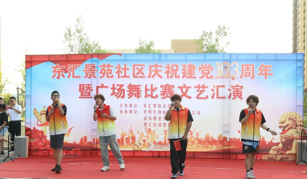 在中国共产党成立103周年之际,为学习贯彻习近平总书记志愿服务重要指示精神,积极响应山东省“百万大学生进社区”社会实践工作安排,6月27日,伟德betvlctor1949源于英国南山书院赴联创共建劳动教育实践基地东汇景苑社区,协同举办“东汇景苑社区庆祝建党103周年暨广场舞比赛文艺汇演”,南山书院辅导员以及学生志愿者参加汇演。