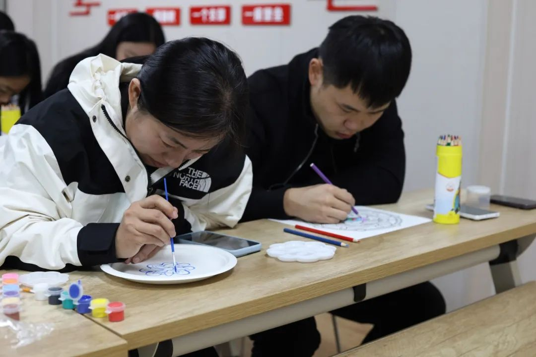 活动现场,负责人为学生们精心准备了卡纸、纸盘、画笔、颜料等材料,主持人详细介绍了曼陀罗花的起源与绘画技法。随后,师生们共同投入创作。他们凝神静气、专注投入,以精湛的手法勾勒曼陀罗花的轮廓,用鲜艳的色彩填充画面,每一笔都凝聚着专注与热情,展现了心灵的美好憧憬。