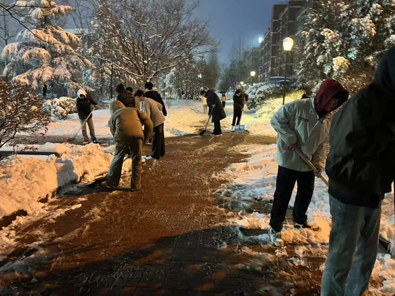 面对恶劣天气,南山书院师生自觉行动,积极投入到扫雪除冰的活动中。风雪无情,师生有爱,志愿者不畏严寒冲锋在前,用爱心与担当开辟出一条条温暖人心的安全通道。他们用行动诠释责任,将“奉献、友爱、互助、进步”的志愿精神,融入这洁白的春雪之中。