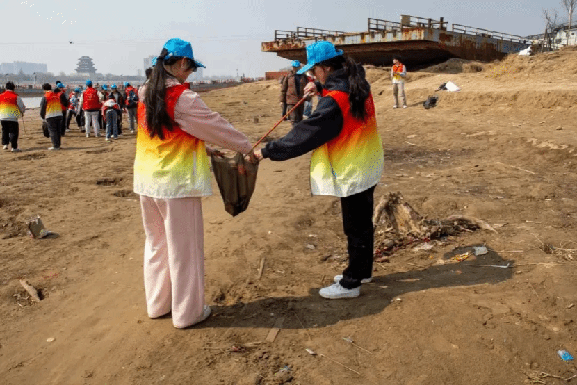 随后,志愿者们前往黄河沿岸,投入到黄河净林净滩志愿服务行动中,他们手持垃圾袋和清洁工具,仔细清理河岸上的垃圾杂物,用实际行动守护黄河的生态环境,为黄河沿岸的环境改善贡献了一份力量。