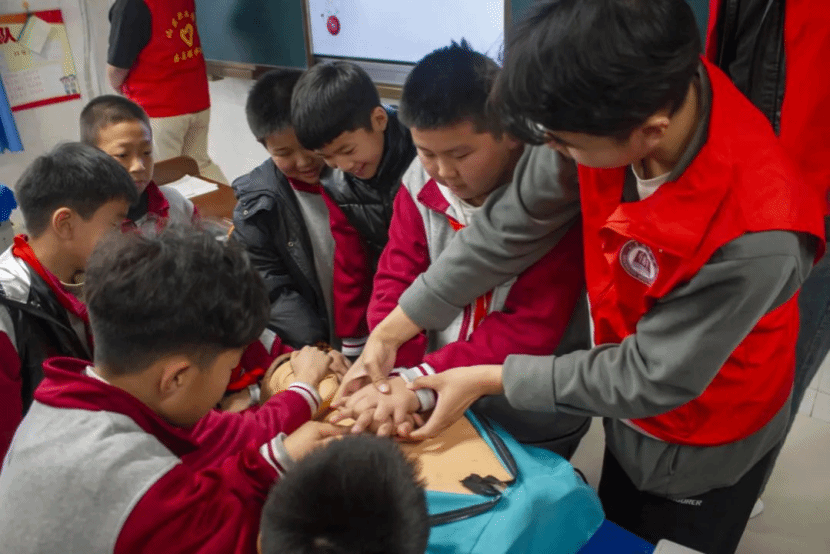 在模拟操作环节,孩子们在志愿者的指导下,利用人体模型进行相关急救技能的练习。通过亲身体验,孩子们掌握了正确的急救手法和力度,切实提升了急救技能。