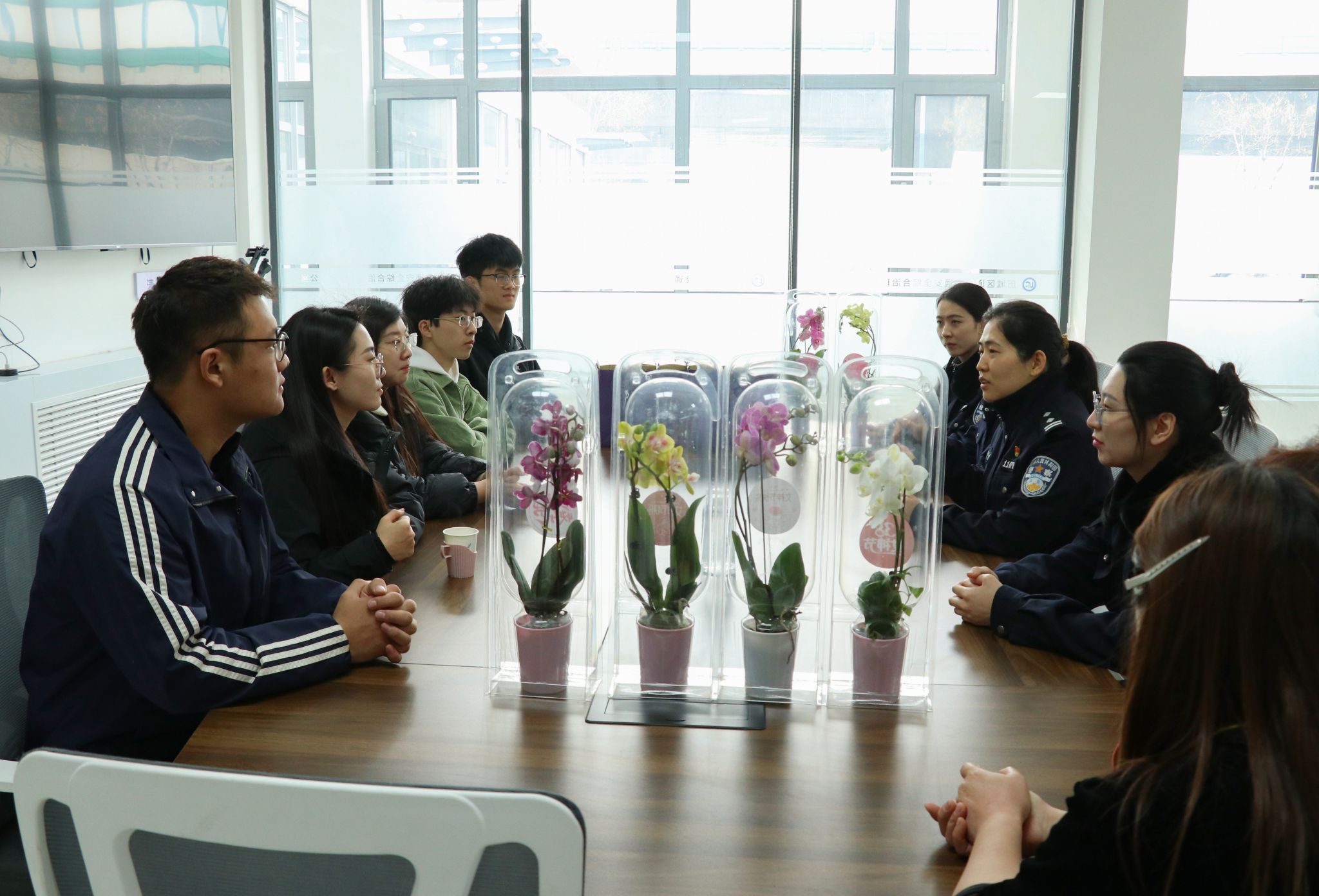 在历城大队交通肇事处理中队,志愿者们向长期奋战在交通事故处理一线的女警察送上诚挚的祝福。交警们为师生讲解了信息中心的先进网络设备,并分析了典型的事故案例,就交通安全提出了意见和建议,在同学们的心中种下了安全意识的种子。