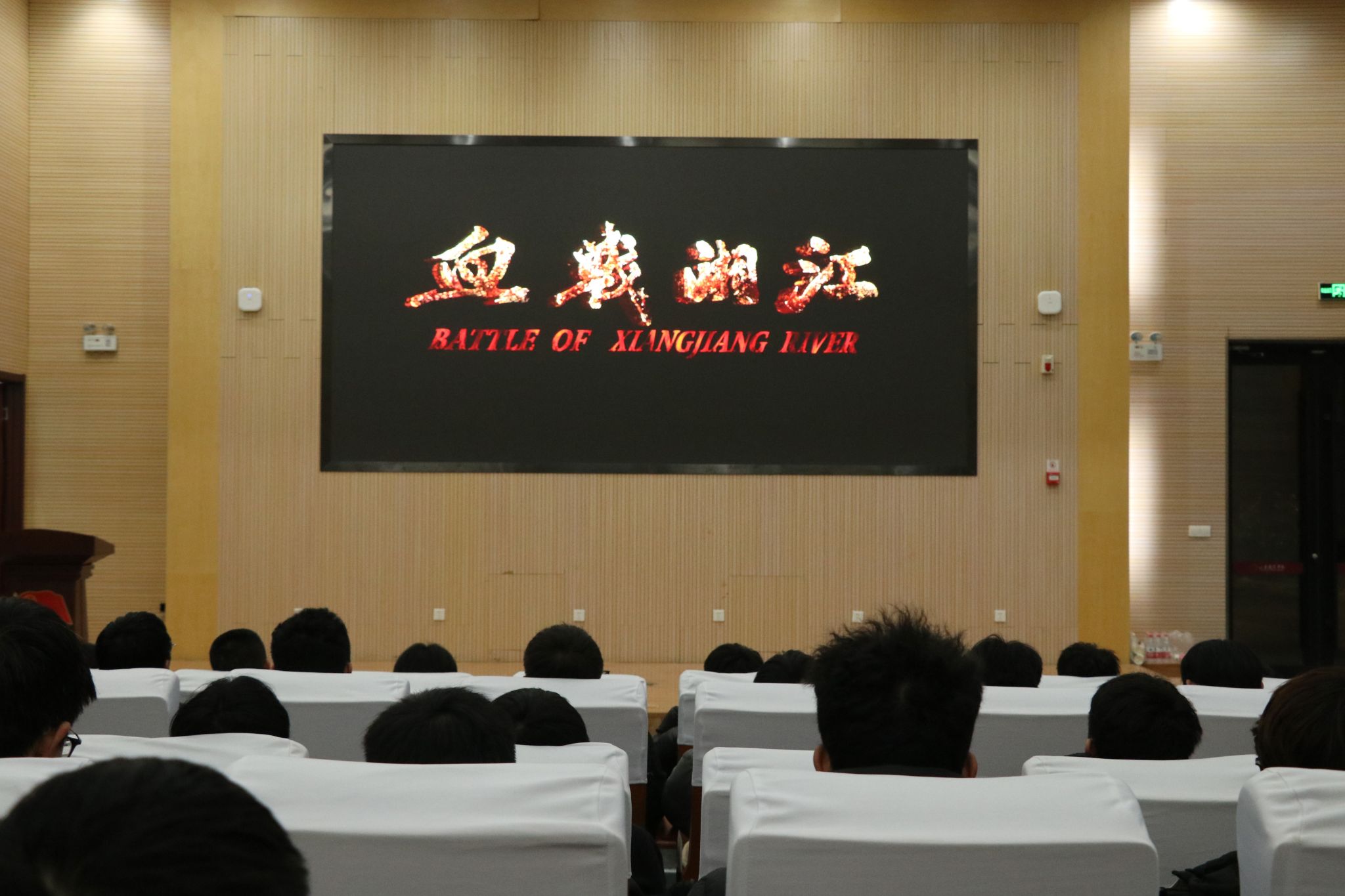 《血战湘江》讲述了红军第五次反“围剿”失败后,中央红军被迫长征,在湘江一带展开湘江战役的故事,此战为遵义会议的召开奠定了重要基础。影片中战士们英勇无畏、奋不顾身,用生命诠释了对党的忠诚、对革命的坚定信念。现场气氛庄重而安静,同学们认真专注,感叹于战士们的英雄气概。