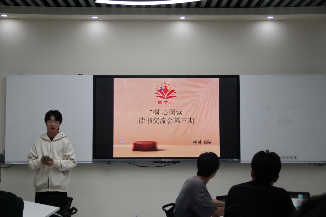 为引导桐林学子在阅读中淬炼精神品格,4月24日,桐林书院在图书馆行政楼二楼团辅活动中心举办第三期“桐心阅读”读书交流会。24203书社董展翼同学、24203书社王太港同学、24203书社孙清钰同学担任此次交流会的分享人。