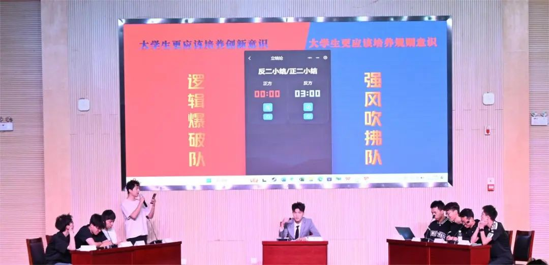 六支队伍分别围绕“创新意识和规则意识哪个对大学生更重要”“自我调节和外部支持哪个对克服焦虑更重要”“竞争和合作哪个在未来社会更重要”三个辩题展开激辩,选手们引经据典,旁征博引,金句频出,他们用严谨的逻辑与生动的例证赢得了现场观众的阵阵掌声。