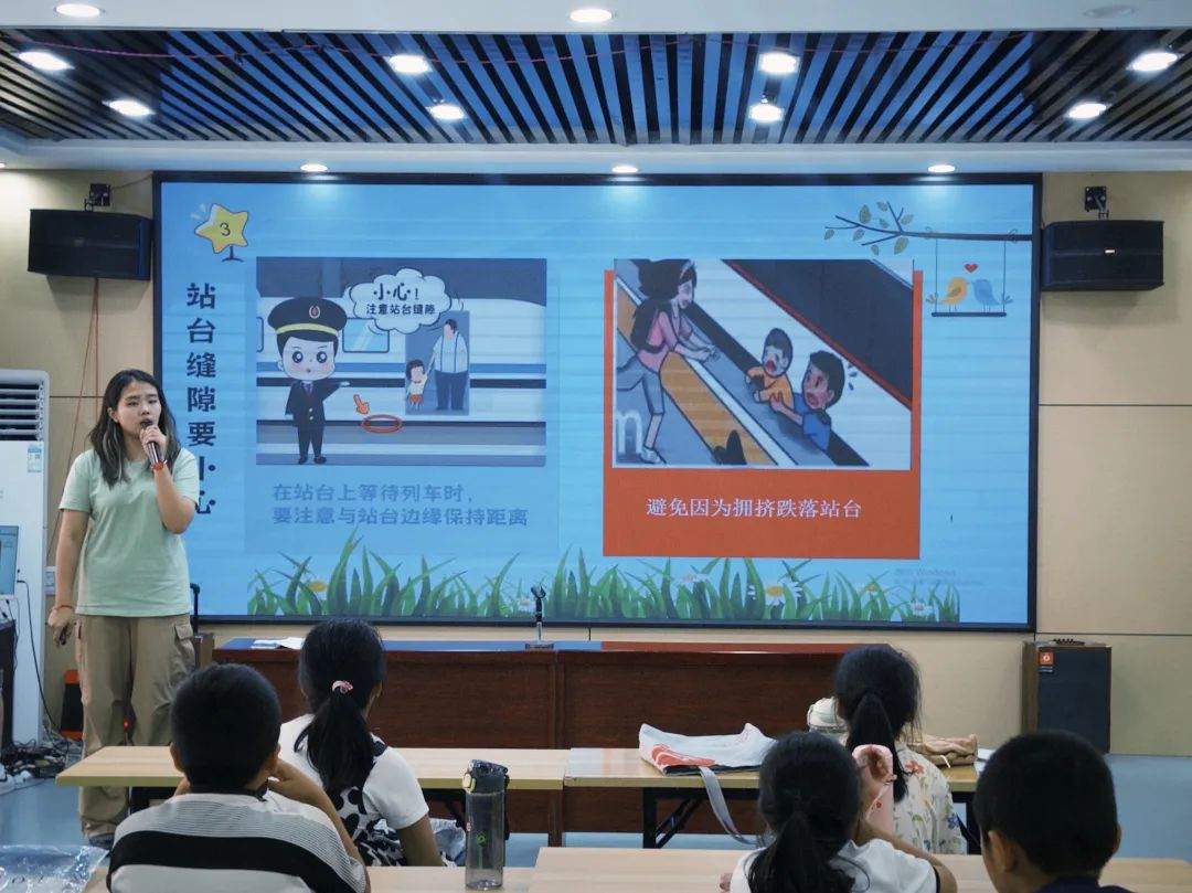 轨行万里,安全筑梦强国路。铁路知识课堂上,实践队带领孩子们踏上“铁路探索之旅”。志愿者们用生动图文、趣味动画、短视频等方式展现从绿皮车到高铁的“中国速度”飞跃,并教他们背诵安全口诀,激发了孩子们的自豪感。孩子们化身“安全小侦探”,踊跃举手、热烈讨论乘车安全要点,在轻松愉快的游戏式学习中,深刻理解并牢记“不在铁轨上玩耍”等安全准则,让探索世界的梦想在安全的轨道上启航。