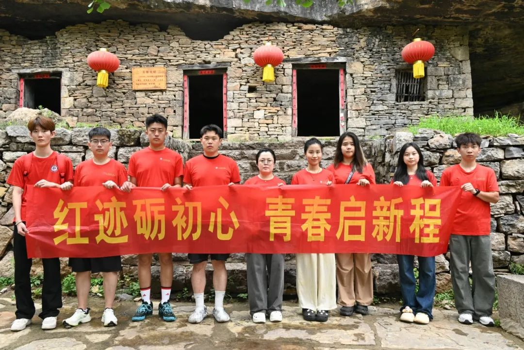 探寻红色印记,感悟奋斗史诗。在工作人员的引导下,团队先后踏访了天潭水库、龙泉、九间棚村旧址等承载着历史记忆的场所。站在昔日的“干山顶”,俯瞰今日层叠的梯田、葱郁的金银花田和整洁的新村,成员们直观感受到九间棚“旧貌换新颜”的震撼变迁。随后,团队成员通过观看纪录片、聆听讲解,深入理解了九间棚“九柱擎天”带领群众攻坚克难的感人历程,深刻认识到党建引领、群众主体、产业支撑是乡村振兴的关键所在。“这次的实践调研让我深刻认识到乡村发展的巨大潜力。”一位成员在参观后深有感触,“九间棚的前辈们‘敢教日月换新天’的魄力和智慧令人钦佩。作为一名大学生,我更加坚定了未来回到家乡的决心,要用所学知识和技能为助力乡村振兴贡献自己的力量!”