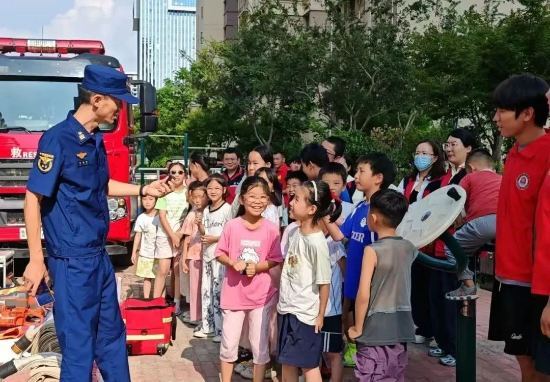活动中,桐林书院暑期社会实践队紧扣德智体美四大方向开设了多门特色实践课程,辅导老师通过多元形式进行讲解,引导孩子们进行深入研究,传递知识与正能量,实现普惠教育与个性化提升的有机结合。此外,为增强小朋友们的安全意识与应急能力,桐林书院还联合碧桂园社区共同邀请消防队开展消防知识讲解,消防员对水枪、破拆工具、急救设备等进行了生动的讲解和演示,小朋友们不仅了解到这些装备如何在火灾、坍塌等复杂场景中发挥关键作用,更深刻体会到消防安全的重要性。