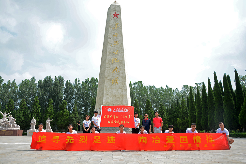 桃花红雨英雄血,碧海丹霞志士心。7月12日,“行远筑梦”服务队参观鲁西南战役指挥部旧址,回顾历史,缅怀先烈,实地接受革命传统教育。鲁西南战役指挥部旧址是以鲁西南战役为历史背景建设的一处革命传统和爱国主义教育基地,是冀鲁豫边区红色旅游新景点。战役指挥部纪念馆馆内全景沙盘、立体电影、战斗场景图片、人物图片、战争遗物等无不令服务队的师生们惊叹。服务队师生们共同向革命烈士之墓鞠躬,对革命烈士致以最崇高的敬意。红色教育的开展,在缅怀革命先烈的英雄事迹和丰功伟绩的同时,也激发了同学们的爱国主义精神,同学们对在中国共产党的领导下,军民团结一致、前仆后继、浴血奋战、建立社会主义新中国有了更加深刻的认识。