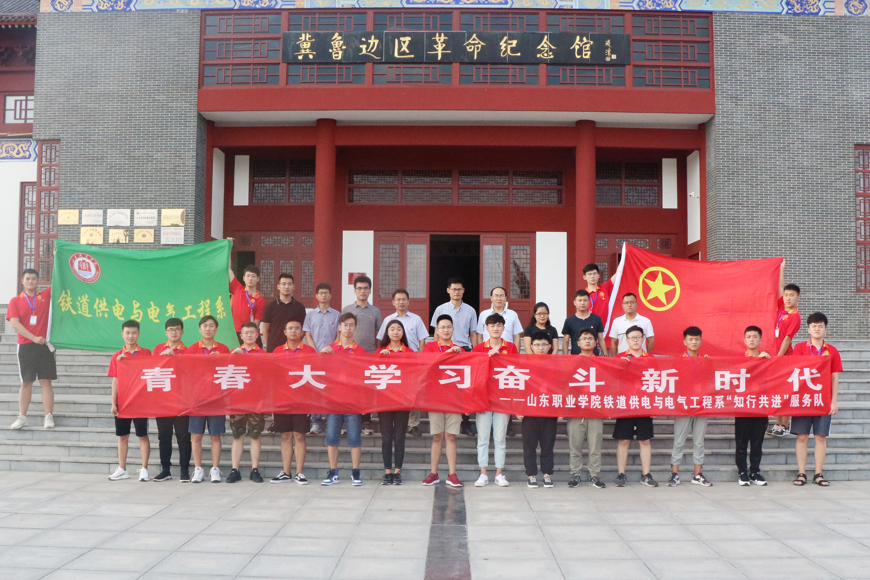 铁道供电与电气工程系今年暑期社会实践活动围绕“青春大学习,奋斗新时代”的主题,坚持“受教育、长才干、做贡献”的宗旨,23名学生组成“知行共进”社会实践服务队在系副主任张伟、学工办主任李亚飞、代理团总支书记冯国英、辅导员李井铭、专业教师史帅和程长江的带领下赴德州乐陵开展理论政策宣讲、教育关爱服务、国情社情观察等系列主题实践活动。青年学子们秉承山职优良传统,发扬社会实践精神,在实践中深入基层、服务社会、锤炼品格、增长才干,培育和践行社会主义核心价值观,展现出了新时代青年的良好风貌。