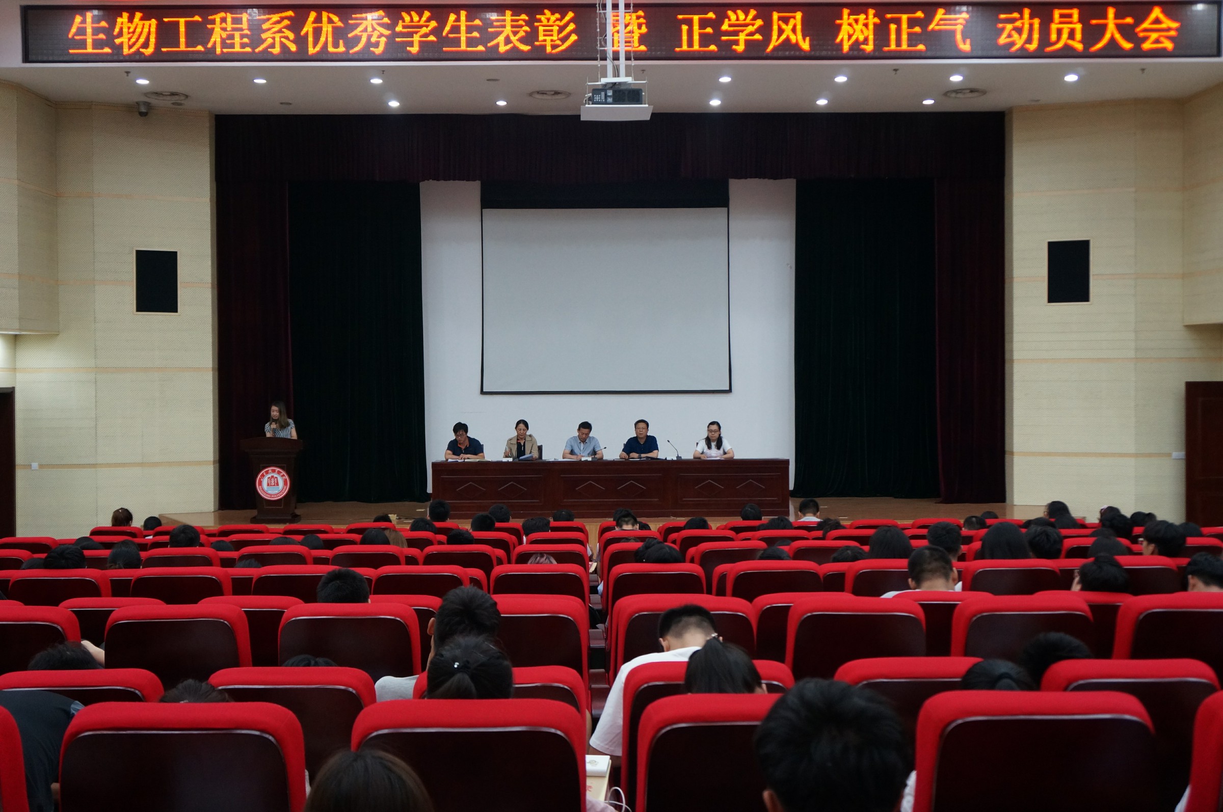 临近期末,生物工程系召开优秀学生表彰暨正学风、树正气动员大会。系主任张守忠、党总支书记王广勇、副主任史晓华、团总支书记张乐、辅导员李启迪出席会议,史晓华主持大会。
