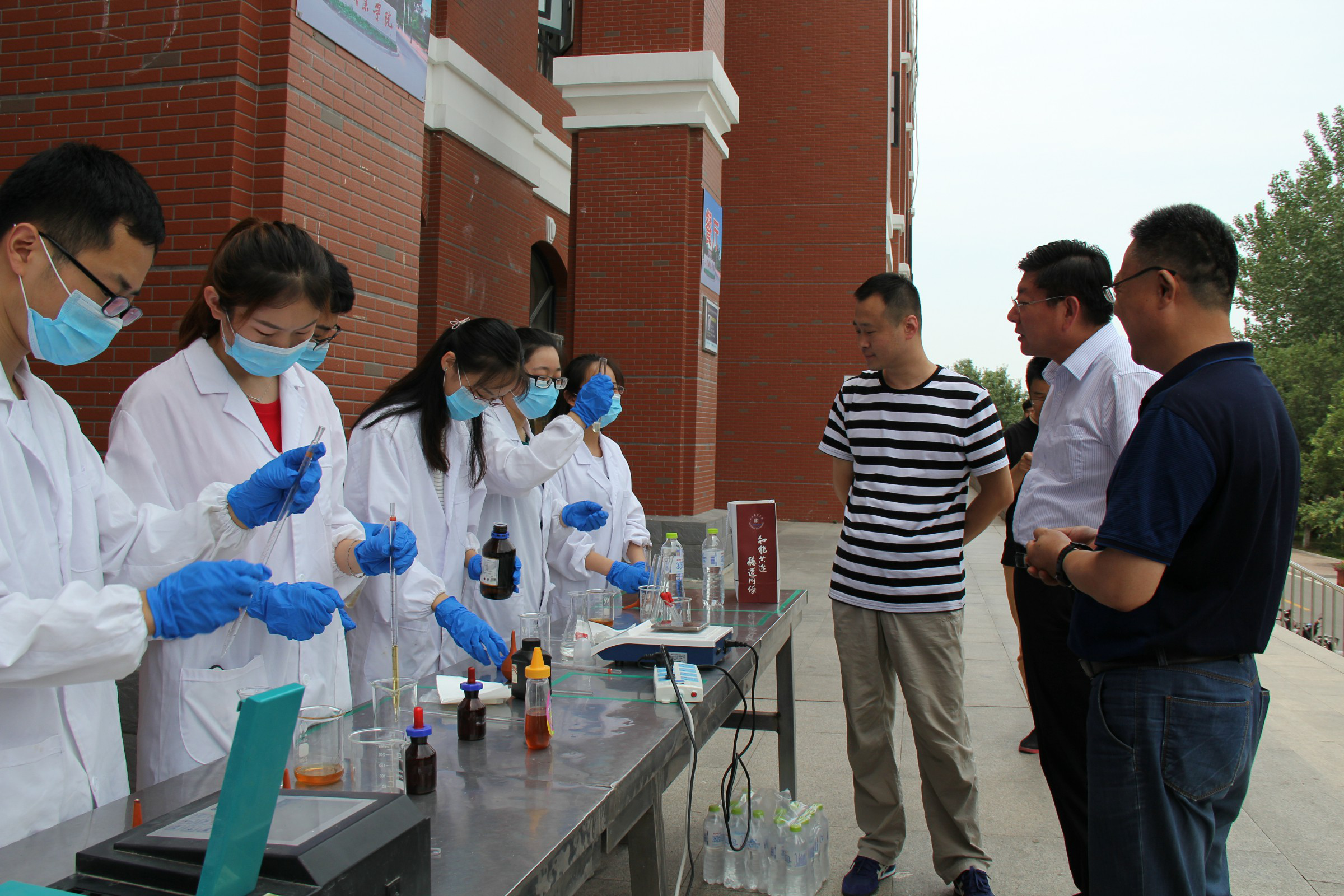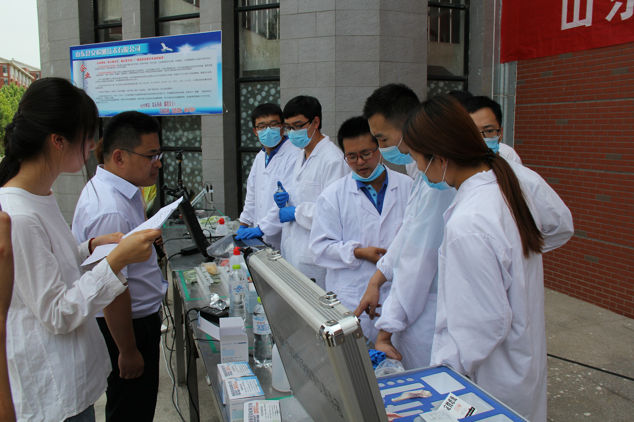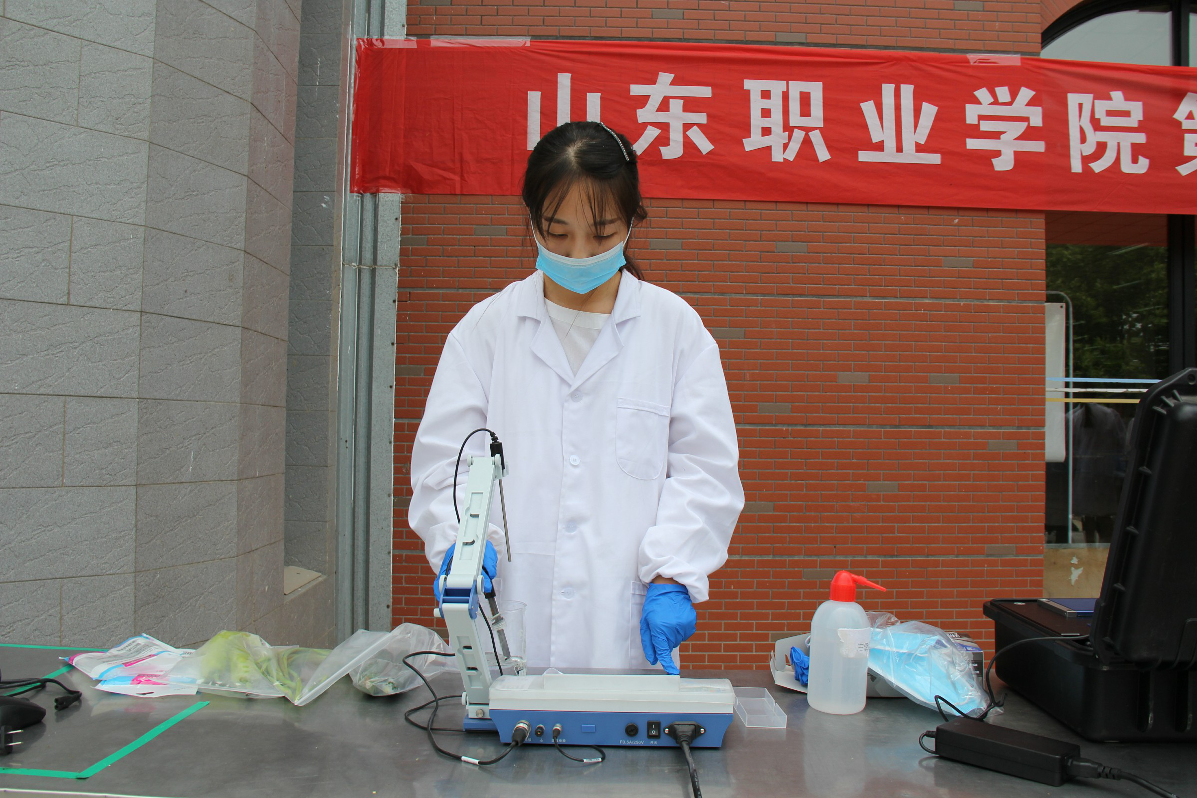 山东食安检测中心配备专业检测技术人员现场操作演示,介绍了各种检测仪器的使用与维护,并针对蔬菜中农残的检测、蜂蜜中掺伪检验、水中硬度检测、馒头中增白剂的检测、饮料有益菌含量检测等项目进行了食品安全快速检测。食品营养与检测的同学们也运用自己学到的专业知识,为师生进行现场演示操作。