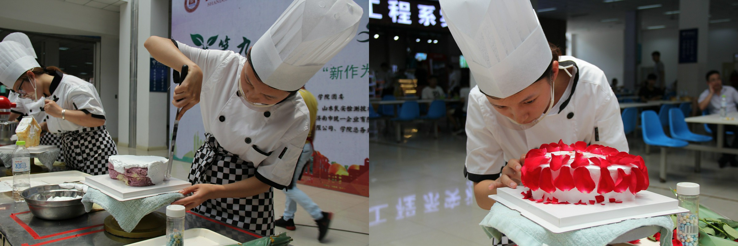 食品营养与检测1631班生玉雪同学说道:“通过本次裱花技能展示,我看到了其他同学优秀的地方,也看到了自己不足之处,如何改良自己的裱花手法以及不断提高创意,是我今后的练习重点,西点给人的感觉是甜蜜的,如何把这份幸福传递给每一位品尝它的人,也是我今后需要多加考虑的地方。”
