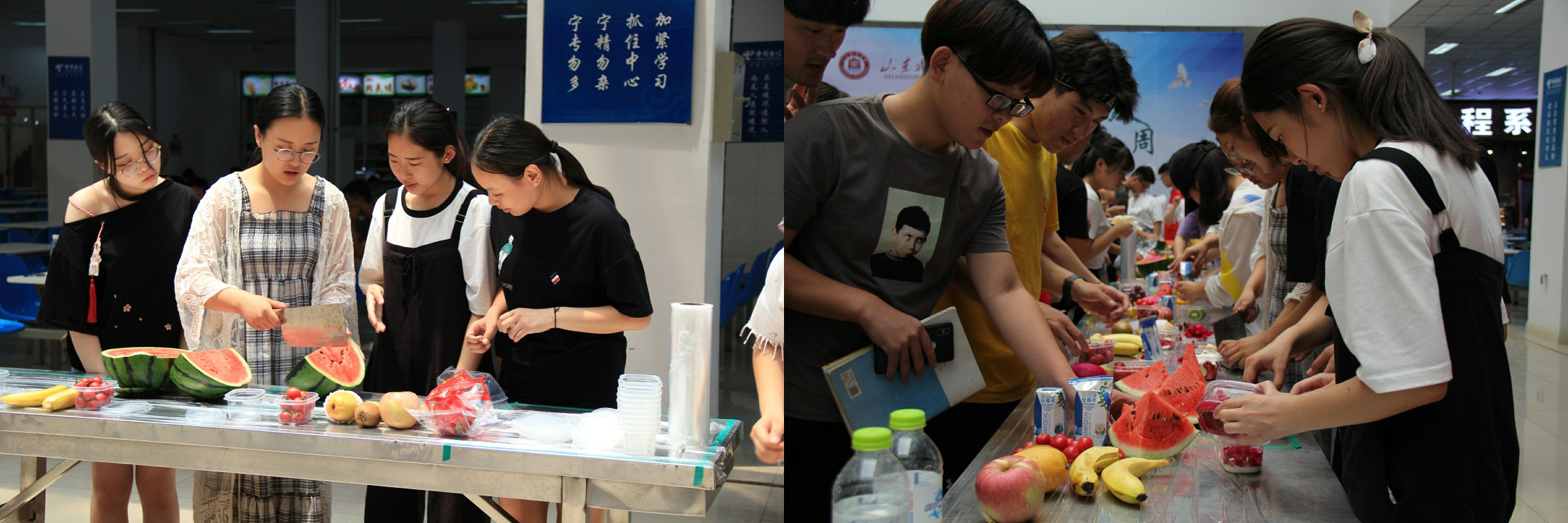 今天活动的主题是“秀技能、展风采”,生物工程系学生现场进行了蛋糕裱花、水果拼盘制作、茶艺表演等技能展示,活动现场气氛热烈,选手们尽情发挥创意,精雕细琢。他们或切、或拼忙得不亦乐乎。蛋糕、奶油、西瓜、苹果、芒果、香蕉等各种食材,在选手们的创意下,拼放成各种图案,作品色彩艳丽、精美绝伦。同学们细心谨慎、严谨规范的操作,让一件件精美的创意作品展示在师生眼前。优美的乐曲、美轮美奂的表演,让广大师生沉浸在美食美味的诱惑中,忍不住伸出手、张开嘴,享受美食的盛宴。