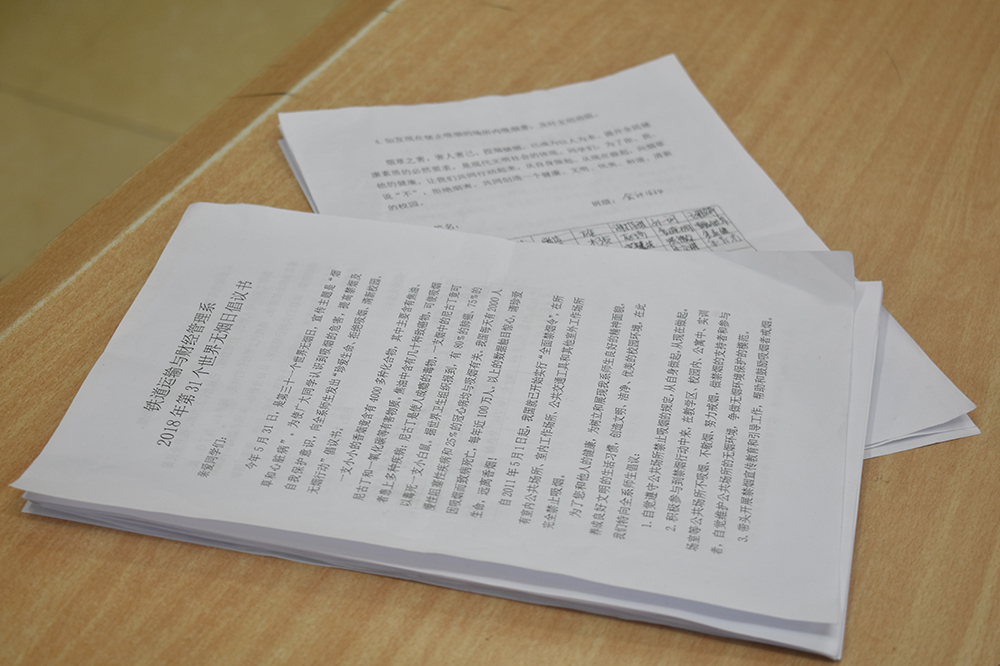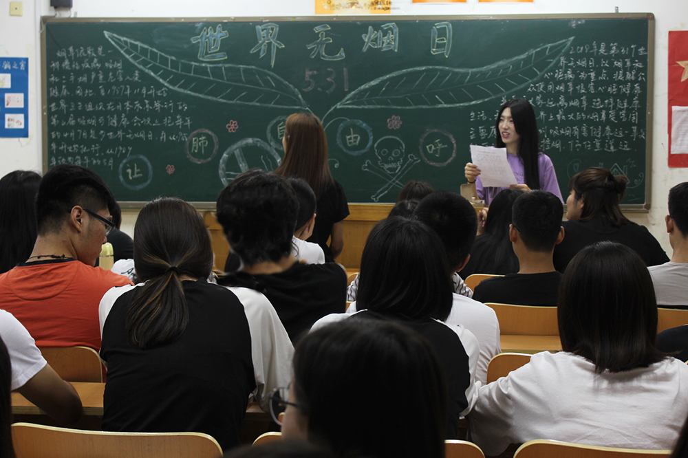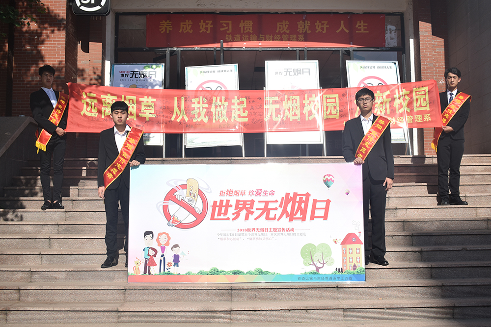 5月31日是第31个“世界无烟日”。为使同学们认识到吸烟对健康的危害性,培养良好的生活习惯,铁道运输与财经管理系在“世界无烟日”开展了系列活动,推动师生校园禁烟工作。
