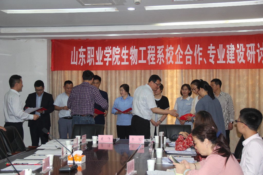 徐冬为校企合作委员会和专业建设委员会委员分别颁发委员、品牌专业群带头人聘书。他在讲话中全面分析了校企合作的重要性,充分肯定了生物工程系在校企合作、专业群建设以及学生就业等工作中取得的成绩,并对下一步的校企合作和专业建设工作提出要求。