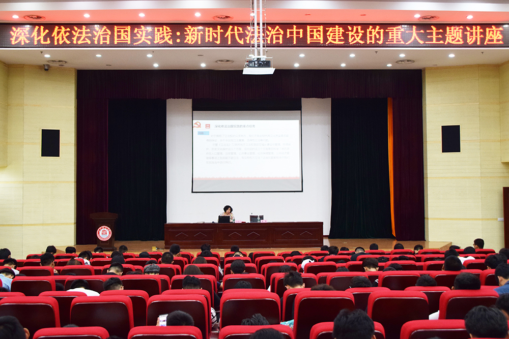 为深入学习贯彻习近平新时代中国特色社会主义思想和党的十九大精神,5月23日,铁道供电与电气工程系举办“新时代法治中国建设的重大主题”讲座,邀请基础部(思政部)教师范瑞仙作《深化依法治国实践》主题报告。系副主任张伟、代理团总支书记冯国英、基础部(思政部)教师张燕青与学院近200余名学生参加报告会。