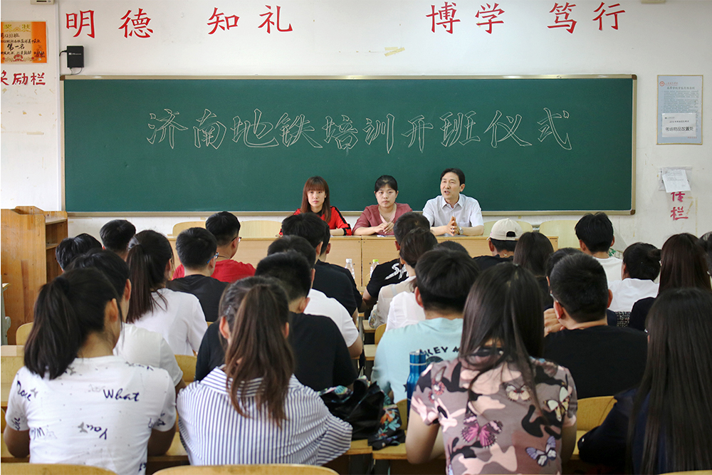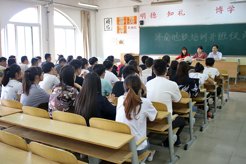 城市轨道交通系作为济南轨道交通的合作单位,承担2015级济南地铁培训班为期50天的培训任务。5月14日,城市轨道交通系举行济南地铁培训开班仪式。公司综合管理部吴文静、客运部赵倩,城市轨道交通系主任王绍军出席会议。