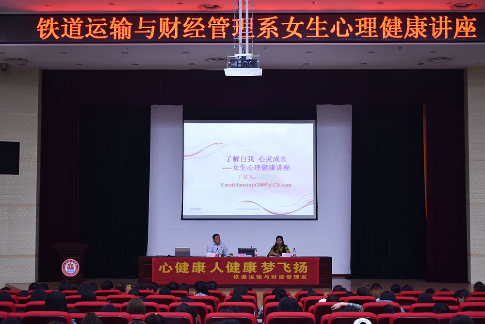 为增强女生心理素质,提高女生自我保护意识,缓解心理压力,5月9日,铁道运输与财经管理系举办了“心健康,人健康,梦飞扬”女生心理健康知识讲座。系学工办主任栾金志主持活动,系大学生心理健康教育老师范秀菊老师担任主讲。