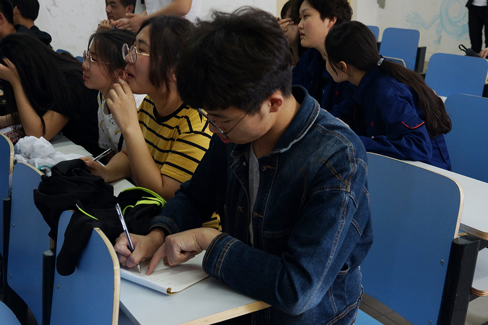 本次竞赛以闭卷笔试的形式进行,考题主要由基础题和综合题目两部分组成。其中,综合题目中的案例分析题,密切结合大学生在学校生活中可能遇到的问题和情景,着重考察了学生对心理知识的掌握和自我心理的调控和支配能力。笔试现场紧张而秩序井然,同学们有序参与、沉稳答题。
