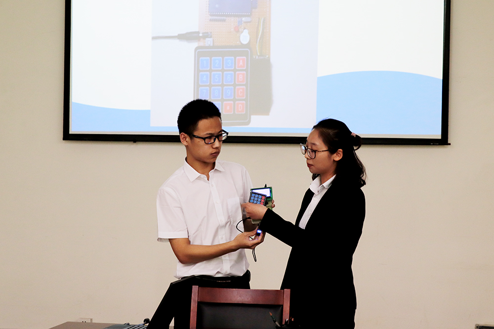 特长生汇报按照课题小组陈述课题主要内容、评审督导教师提问点评、学员答辩的程序进行。各位汇报人逻辑清晰,重点明确、亮点突出,充分展示了各课题组的研究成果。评委老师认真负责地为每个课题组的汇报内容进行点评,并就完善课题内容提出了详细的指导意见和改进建议。经过各位评委评定,赵勇老师指导的《模拟雷电冲击直流高压发生器的设计与制作》和郑淑军老师指导的《智能数显电烙铁设计制作》两个课题作为系优秀特长生课题参加学院特长生课题汇报。