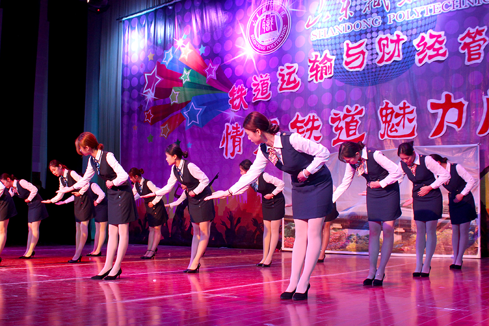 铁路风采展以一段热烈的开场舞拉开序幕,鲜艳的礼服与优美的舞姿带动起了全场气氛。《车站故事》和《地铁轶事》分别讲述了发生在火车站及地铁站里的故事,通过站务工作人员与乘客之间的幽默故事展示了站务工作人员的敬业精神,赢得了观众们的热烈掌声。《接发列车》通过表演者指挥列车的信号旗为观众们展示了车站助理值班员的岗位技能;歌曲《坐上火车去拉萨》,歌声甜美悠扬,伴舞们随节奏翩翩起舞,极具观赏性;礼仪风采通过“服务标准展示”向大家呈现了乘务员们服务旅客、情系旅客的精神面貌。张锦师与杨冀老师共同进行的一段礼仪展示更是将本次活动推向高潮,最后的一声“复兴号欢迎您!”向观众传达了复兴号动车组列车的风采,表达了对祖国繁荣昌盛的美好祝愿。由大二学生表演的《那一刻》讲述了在一条条铁路线中的聚散离别,当从远方归来,兄弟知道母亲生病时毫无犹豫的伸出援手相助,心中一暖,情侣分手后在站台回忆着过去发生的一幕幕,感人至深。最后,本次风采展示活动在合唱《光阴的故事》中完美落幕。