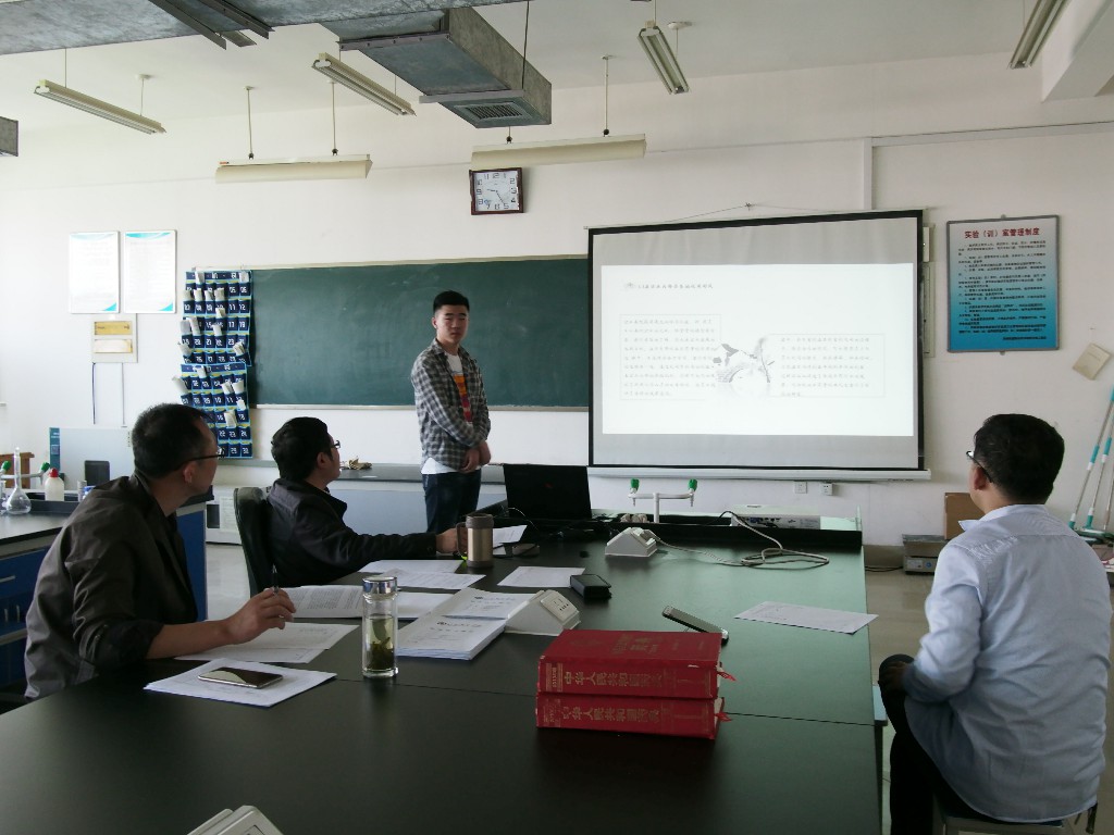 4月19日,生物工程系进行了2018届毕业生毕业答辩。系主任张守忠、副主任史晓华及各位论文指导老师参加答辩会。