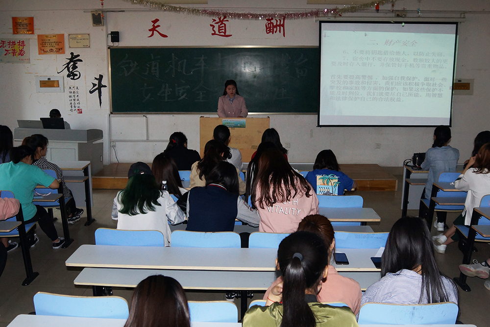 为增强女生防范意识,提高女生自我保护能力,4月18日,铁道机车与机电装备系举办了女生安全知识讲座。2016、2017级全体女生参加讲座学习。