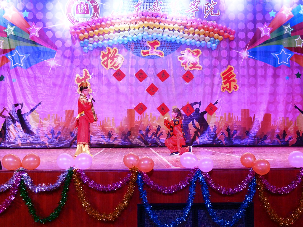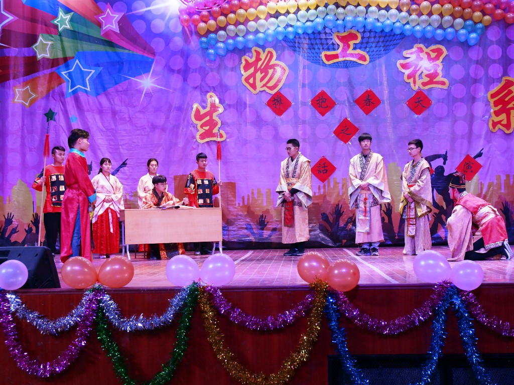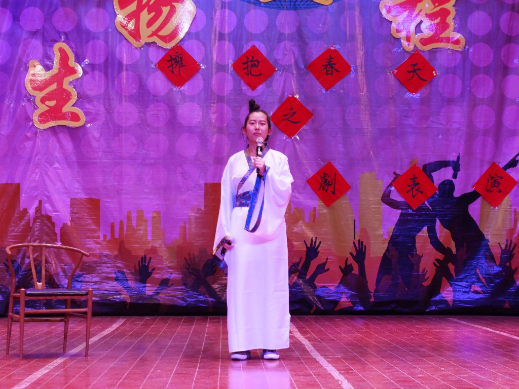 晚风怡人,灯光绚丽。话剧表演由《暗恋桃花源》拉开帷幕,一个个离别与重逢瞬间催人泪下,赢得观众阵阵掌声;伴随着一曲《木兰辞》,话剧《花木兰》上演,同学们用精湛演技演绎亲子离别、身陷沙场,感人肺腑;《长恨歌》凄美感人,为天下有情人送出了美好祝愿;话剧表演中场,一个简单小游戏,使现场气氛飞涨。随后反串剧《孔雀东南飞》逗笑了同学们,耳熟能详的《完璧归赵》尽展机智与勇气,豪迈的《荆轲刺秦王》尽显忠心与悲壮。