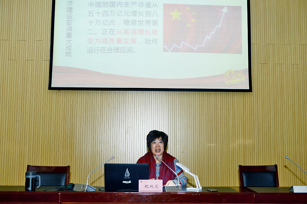 祝瑞花讲到,党的十八大以来,我国经济保持中高速增长,供给侧结构性改革深入推进,经济结构不断优化,数字经济等新兴产业蓬勃发展,基础设施建设快速推进,农业现代化稳步推进,“一带一路”、京津冀协同发展、长江经济带等建设实施成效显著,创新型国家建设成果丰富,中国制造不仅翻身而且牛气冲天。这些在经济建设方面取得的重大成就,正是得益于坚定不移贯彻新发展理念,得益于坚决端正发展观念、转变发展方式,从而实现了发展质量和效益不断提升。