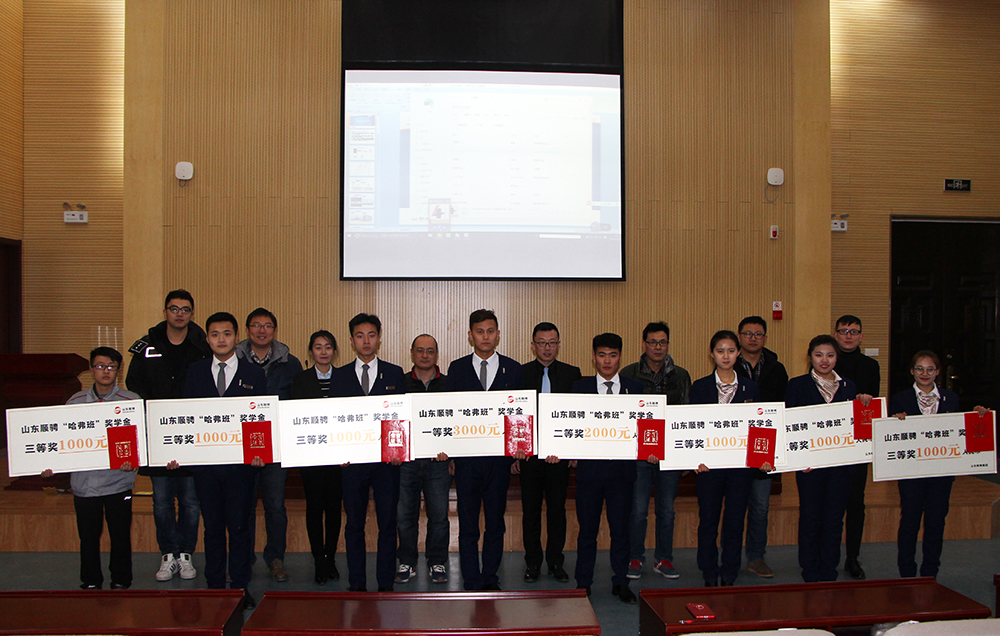 敦品励学,榜样领航。1月11日,铁道机车与机电装备系与山东顺骋集团举行2015级“哈弗班”表彰暨2016级“哈弗班”选拔大会。山东顺骋集团顺骋学院院长陈元鹏出席仪式并讲话,学院招生就业处副处长张劲松为活动致辞。铁道机车与机电装备系副主任唐勇、汽车专业教研室主任万其仓、就业与校企合作办公室主任郭士吾、顺骋学院高级讲师杨帆出席大会,活动由顺骋学院培训部负责人胡婷婷主持。