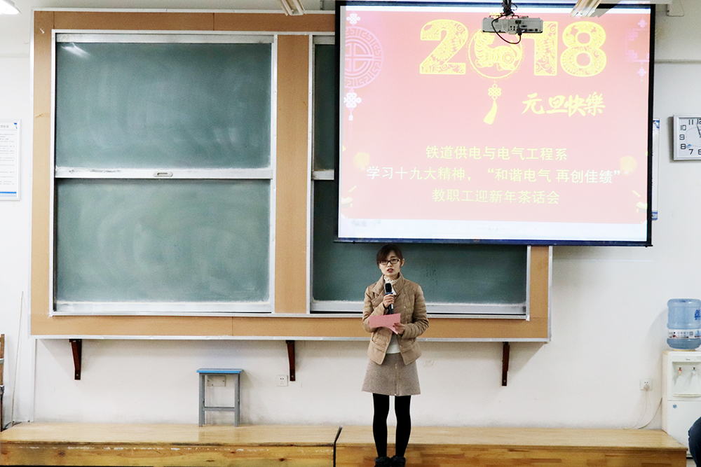 清茶飘香,团结情深;凯歌高奏,辞旧迎新。12月28日,铁道供电与电气工程系举办“和谐电气 再创佳绩”教职工迎新年茶话会,全体教职工共聚一堂,亿往昔、展未来、共祝愿。