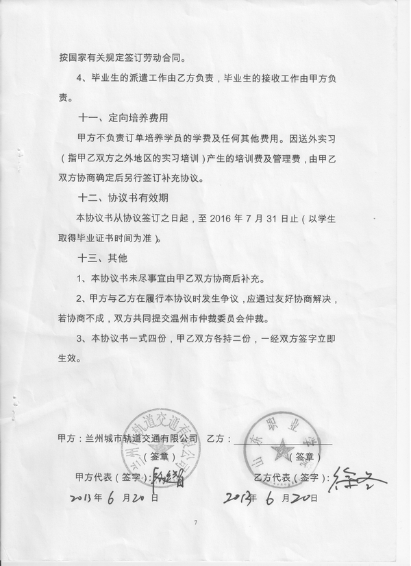 2013级兰州市轨道交通有限公司(兰州地铁)订单班